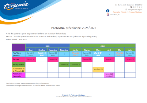 Les actions 2026 sont mises à jour! Café des parents, fiestas, Assemblée générale, Journée Mondiale de la Trisomie 21...Tout est prévu, rejoignez nous!